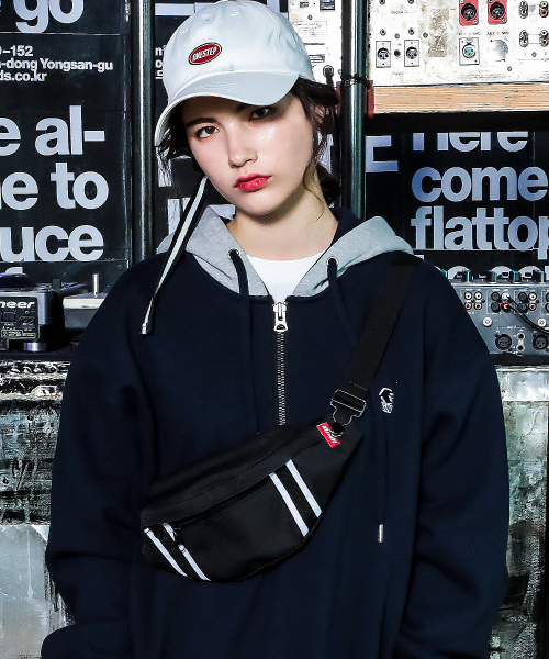 솔리드 웨이스트 백 - 솔리드 웨이스트 백은 전면에 배색 웨빙끈과 라벨로 포인트를 준 제품입니다.