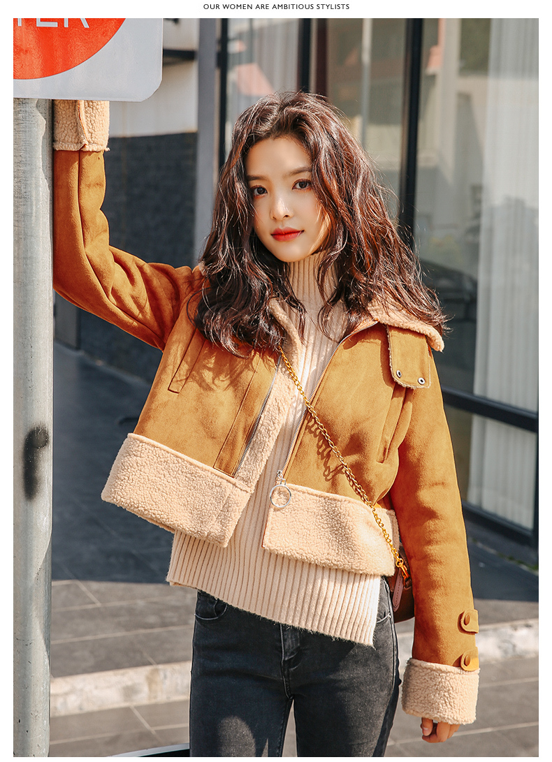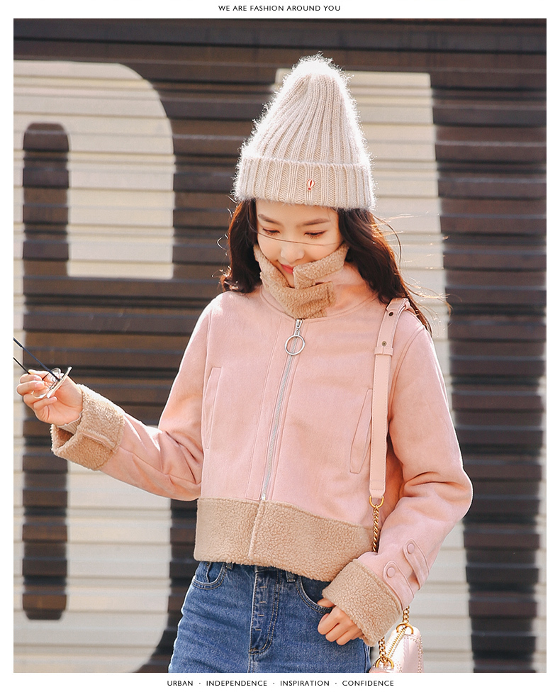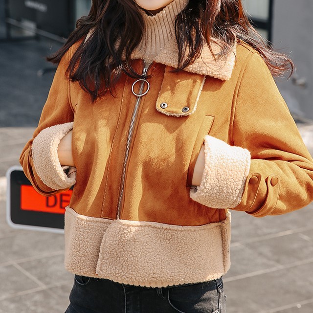 スエード生地×ボアの甘辛ミックスがかわいいショート丈ジャケット。