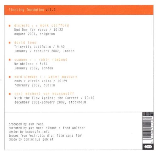 -. Artist : Floating Foundations -. Binding : Audio CD -. EAN : 5411867111917 -. Format : Import -. Label : Sub Rosa -. Manufacturer : Sub Rosa -. NumberOfDiscs : 1 -. NumberOfItems : 1 -. ProductGroup : Music -. ProductTypeName : ABIS_MUSIC -. PublicationDate : 2004-01-01 -. Publisher : Sub Rosa -. ReleaseDate : 2004-01-01 -. Studio : Sub Rosa -. Title : Floating Foundations 2