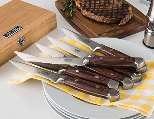 Viking Pakka Wood Steak Knife Set with Rubberwood Box, 6 Piece, Black