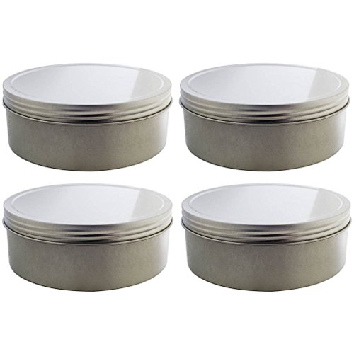 16 oz Silver Shallow Low Profile Metal Tin Containers with Screw Top Twist Lids (4 Pack)