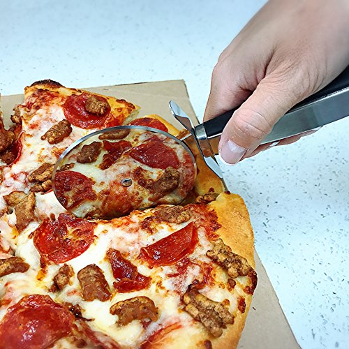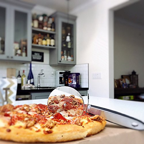 ULTRA SHARP pizza slicer made with premium quality, stainless steel blade. The slip resistant handle and thumb guard adds additional protection. Cut the pizza, not your fingers!
