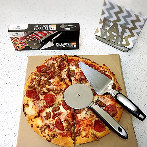 STAINLESS STEEL ergonomically designed pie server & pizza slicer combo set lets you serve with ease.