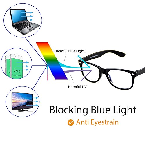 -. Feature : ANTI BLUE LIGHT - Cyxus glasses can cut 90% of the blue light.Reduce eyestrain and headache.Give kids a deeper sleeping. / Frame Material: Plastic ; Lens Material: Polycarbonate ; Notice: This glasses is without magnification and prescription. / FDA REGISTERED COMPANY- Cyxus is the professional eye protection glasses brand in USA with the FDA certification,CE certification and RoHS certification. / LIFETIME WARRANTY - You can return the defective products for repairing or exchanging for free at any time (if not man-made damage). / SELL OVER THE WORLD - All Our products are sold in the USA,Canada,Europe,South America,Oceania,Asia and Africa.