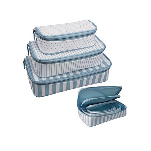 Harry D Koenig Cosmetic Travel Bag, Set Nested, Blue Stripe/Dot Pattern