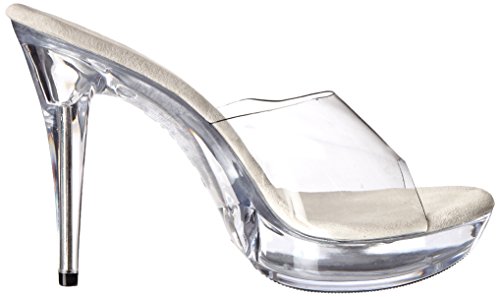 Product DescriptionFeatures. 1 in. Platform Slide Shoe.. 5 in. Heel.. Color - White Clear.. Size - 9.0