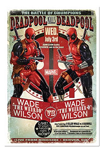 -. Title : Deadpool Wade The Weirdo Wilson Vs Poster Magnetic Notice Board White Framed - 96.5 x 66 cms (Approx 38 x 26 inches)