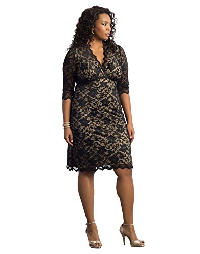 Binding : Apparel Product Description Expect to turn heads in our Class Act Cocktail Dress. This sexy and stylish special occasion dress is perfect for cocktail parties, weddings, or any formal or evening event. Our exquisite lace frock is infused with stretch for a figure flattering fit and you'll love the classic curvy silhouette and midi length. Feminine 3/4 length scalloped sleeves and a v-neckline finish up this elegant style and add subtle sophistication. Available exclusively in women's plus sizes. Lace: 92% Nylon, 8% Spandex; Lining: 100% Polyester. Dry Clean Only. Made with love in the U.S.A. 0