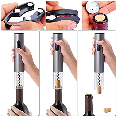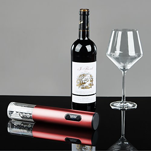 Wine Opener Set, Electric Wine Bottle Opener with Foil Cutter for Wine Enthusiasts and Fans, Battery Powered, Metallic Finish (Red)
