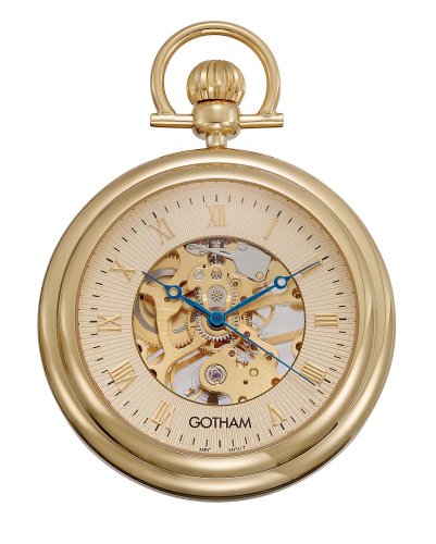 -. Title : Gotham Men's Gold-Tone Mechanical Pocket Watch with Desktop Stand # GWC14055G-ST