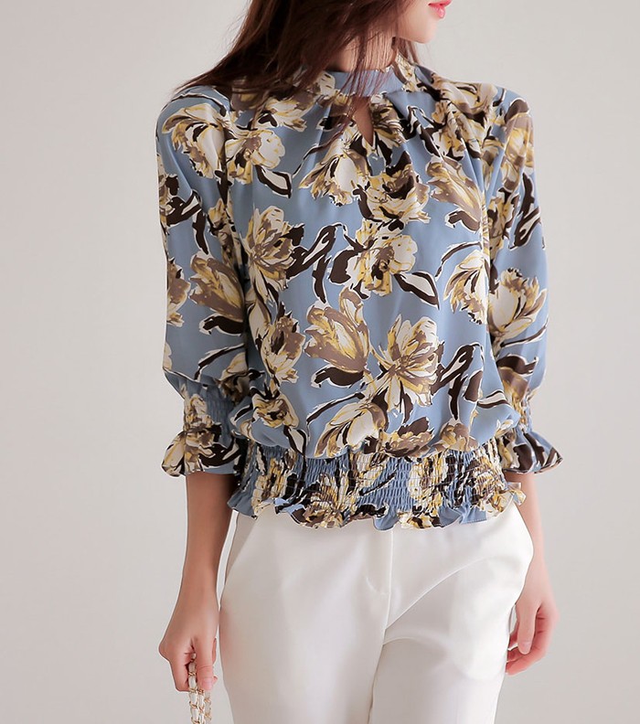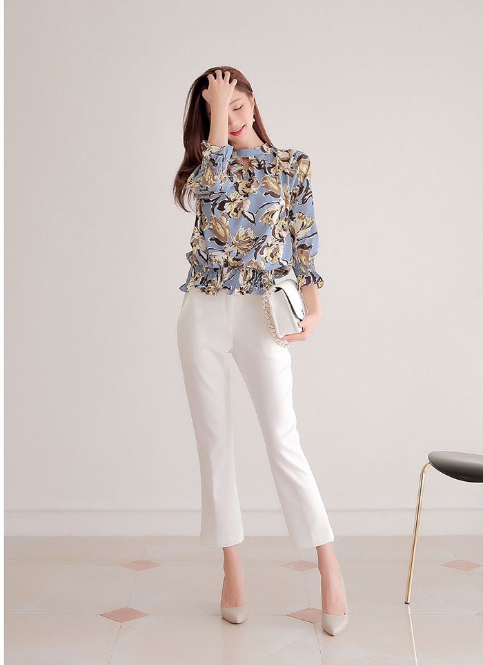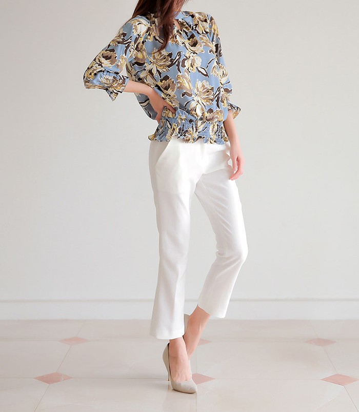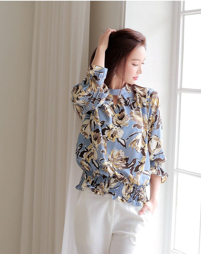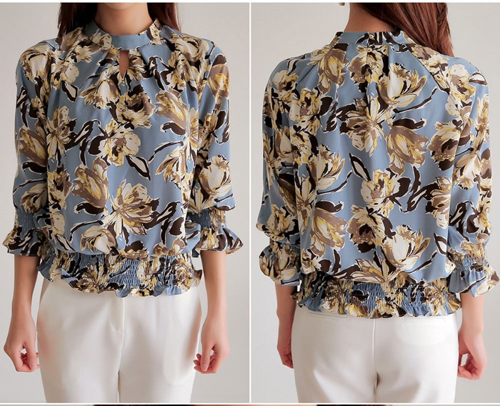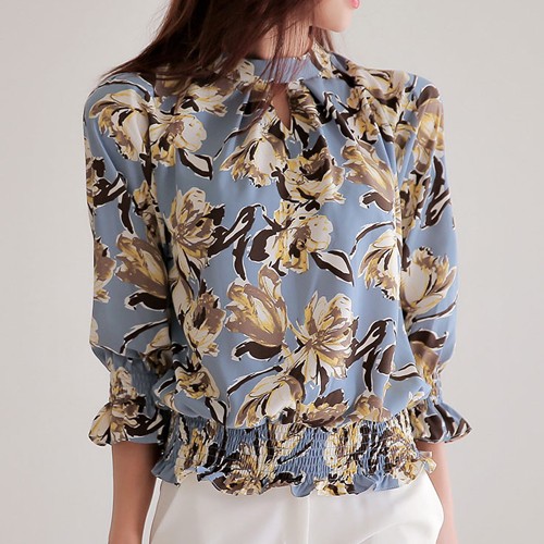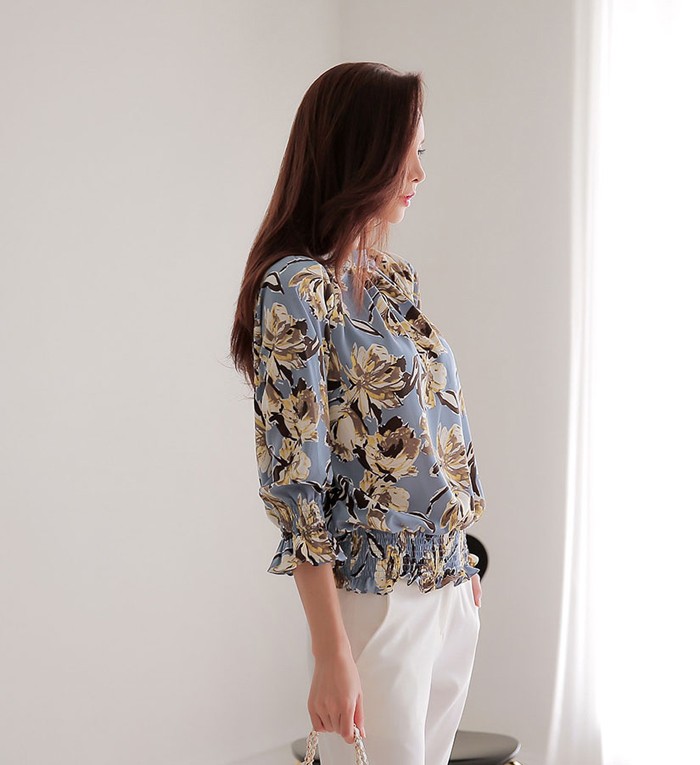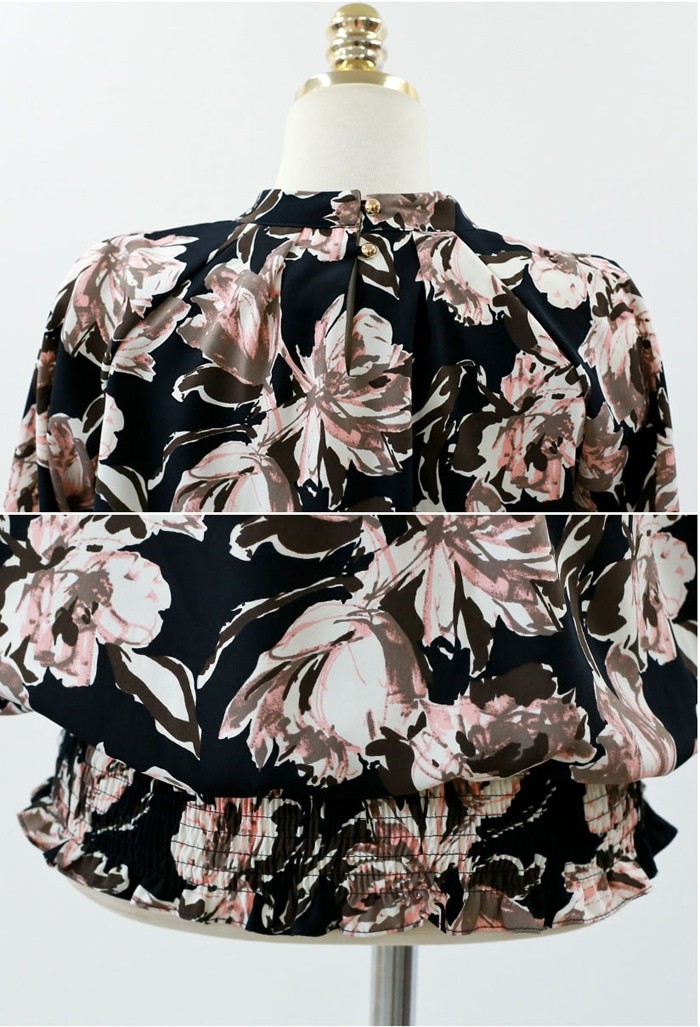 商品名:ブラウス プルオーバー 花柄 フラワー 7分袖