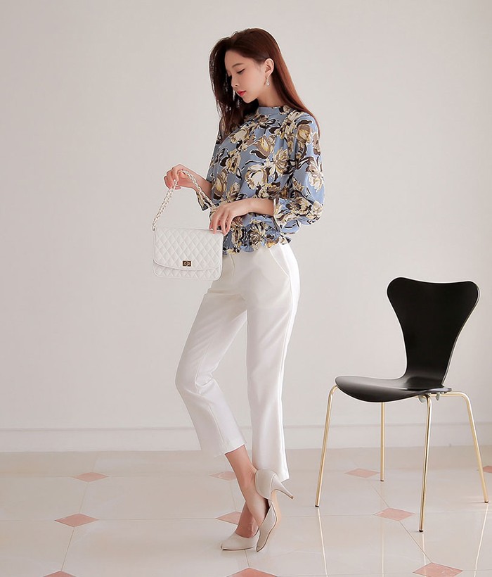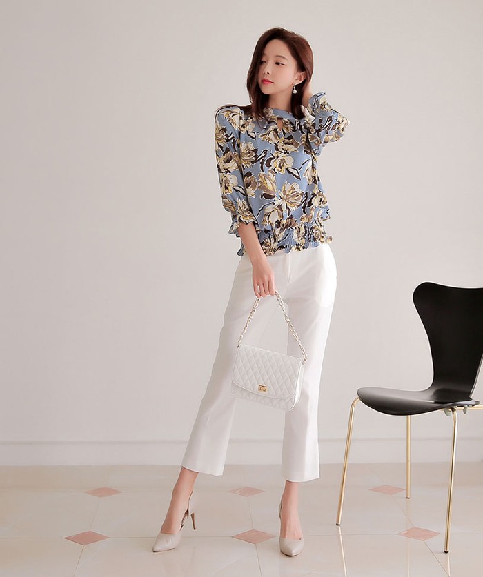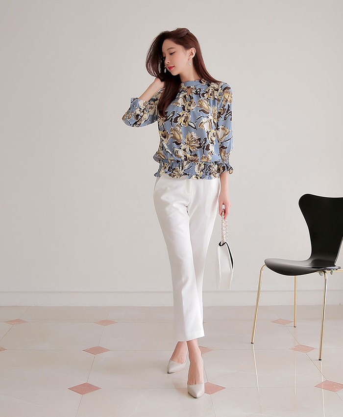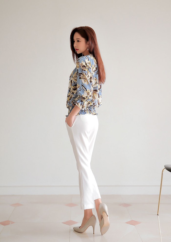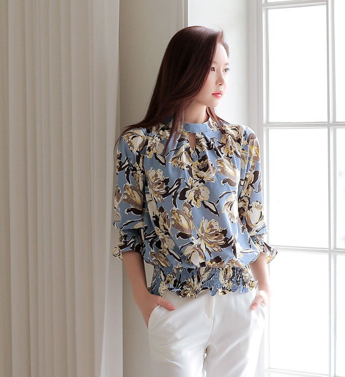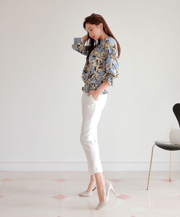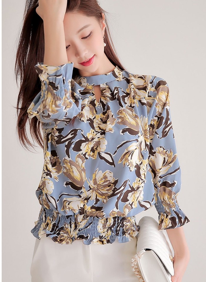 商品名:ブラウス プルオーバー 花柄 フラワー 7分袖