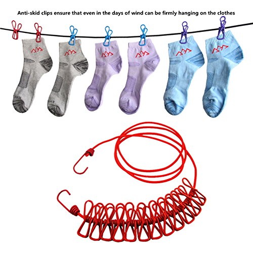 - Length:174cm / 68.5 inch, made up of elastic rubber bands can be arbitrary stretch, the more help you air basks in clothings, durable in use。Products comes with 12 windbreak clothes folder, to solve the beloved clothing will be the wind blow away possible