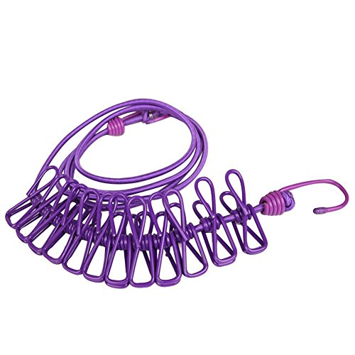 yanhongy Portable Outdoor Travel Flexible Adjustable Clothesline with 12 Clothespins Indoor / Outdoor Windproof Clothesline purple