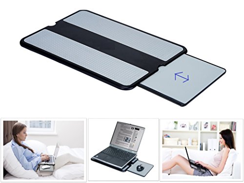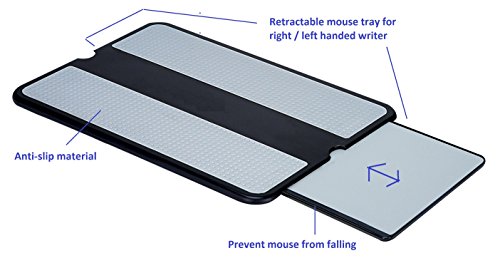 MAX SMART Portable Laptop Tray / Lap Pad / Lap Desk with Right and Left Retractable Mouse Pad, Anti-Slip Surface Using on bed and couch up to 15.6" Laptop, Black / Gray