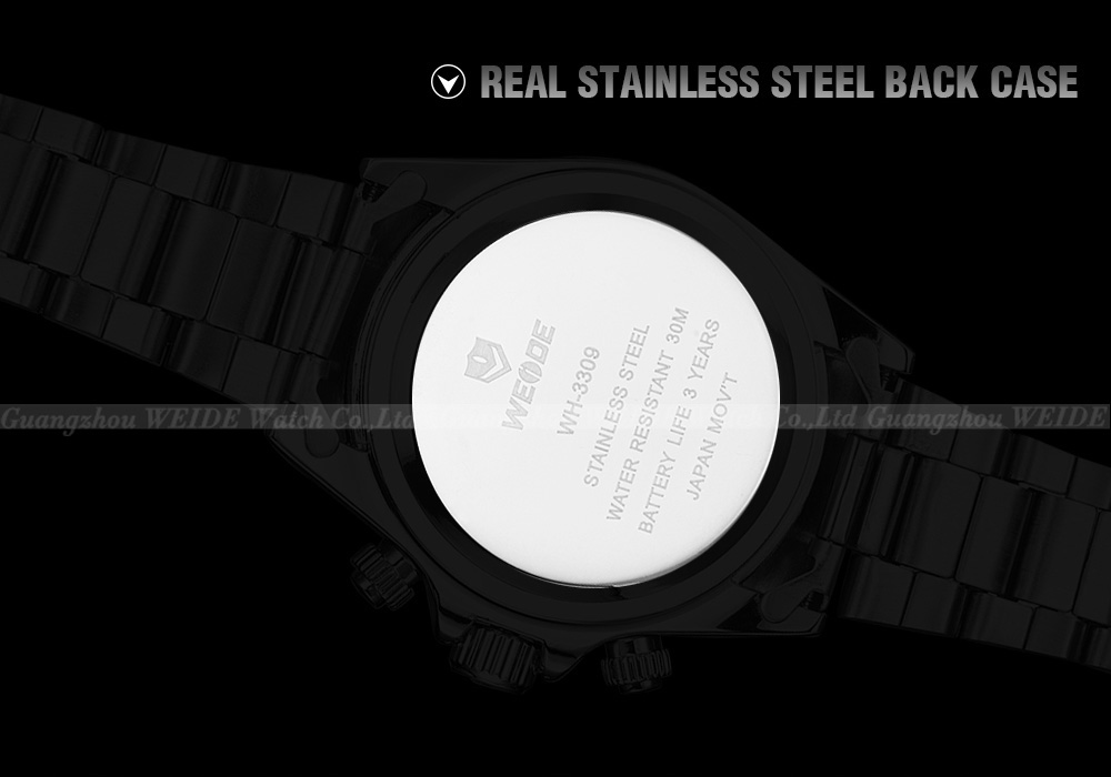 Overview of Weide Japan Quartz Stainless Strap Men Sports Watch 30M Water Resistance - WH3309