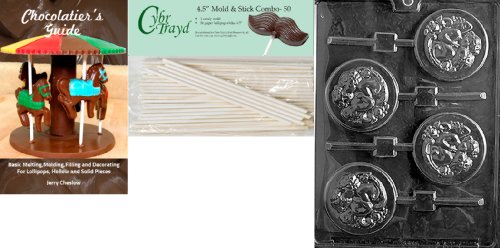 Cybrtrayd 'Victorian Love Lolly' Valentine Chocolate Candy Mold with 50 4.5-Inch Lollipop Sticks and Chocolatier's Guide