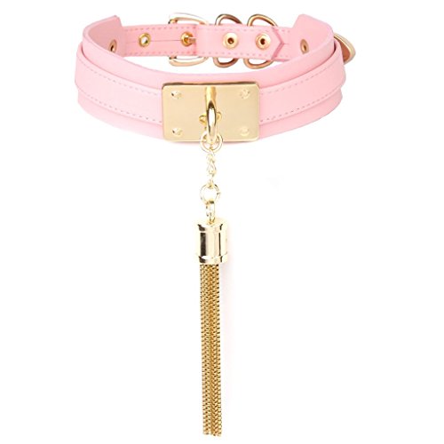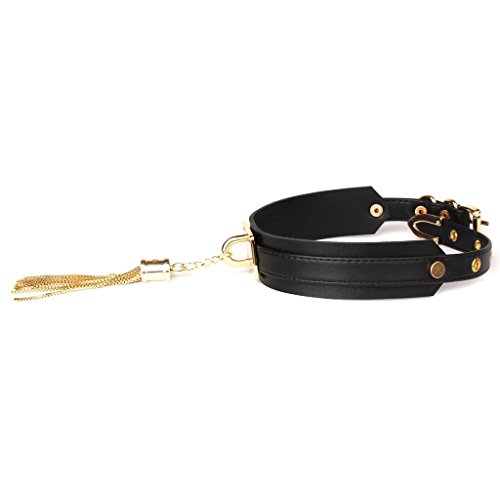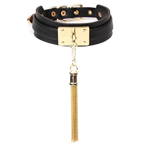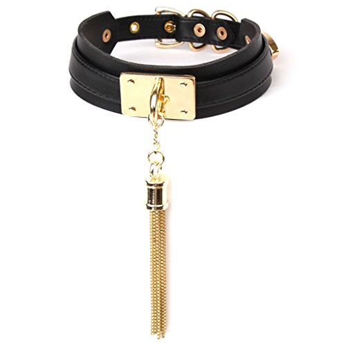 This cool choker is made with super quality vegan leather and alloy, centered with gold plated tassel pendant, with a delicate buckle which clasps at the back of the neck.