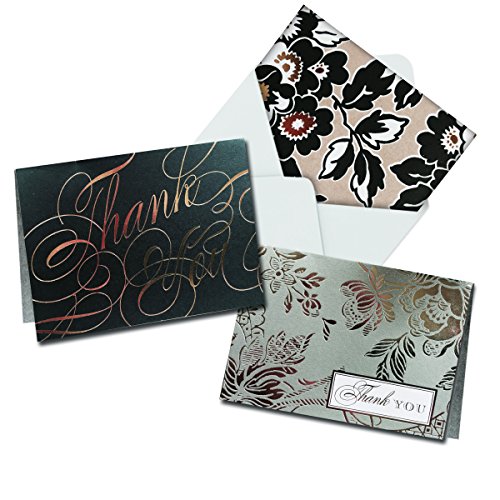 R-Black, Cream, and Gold: 12 Blank Thank You Cards W/Envelope (4 cards of 3 styles)