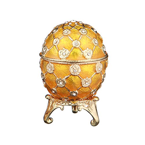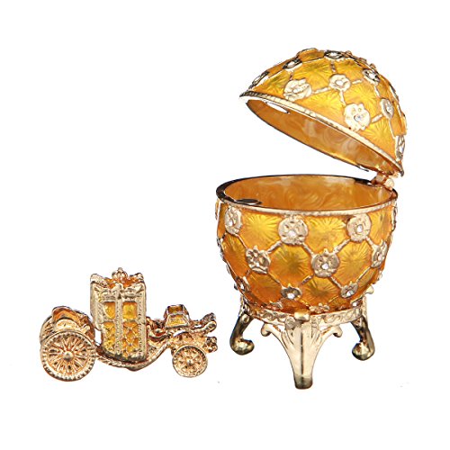 Russian Faberge Style Egg / Trinket Jewel Box Russian Coat of Arms & Carriage yellow 2.4''