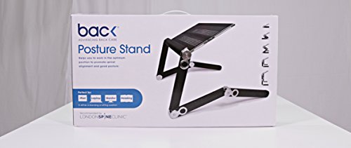 -. Feature : Promotes spinal alignment and good posture / Recommended by the London Spine Clinic / 360-degree rotating joints for complete adjustability / Can be used when sitting or standing / Suitable for laptops under 17"