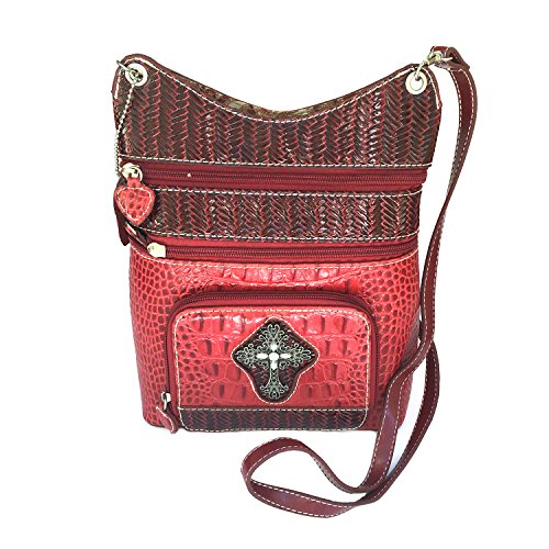 Women Western Fashion Antique Silver Metal Cross Rhinestone Genuine Leather Handbag Crossbody Bag