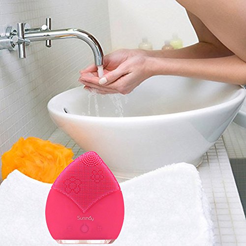 SUNMAY Sonic Face Cleanser and Massager Brush, Rechargeable IPX5 Waterproof Organic Silicone Facial Cleansing Brush