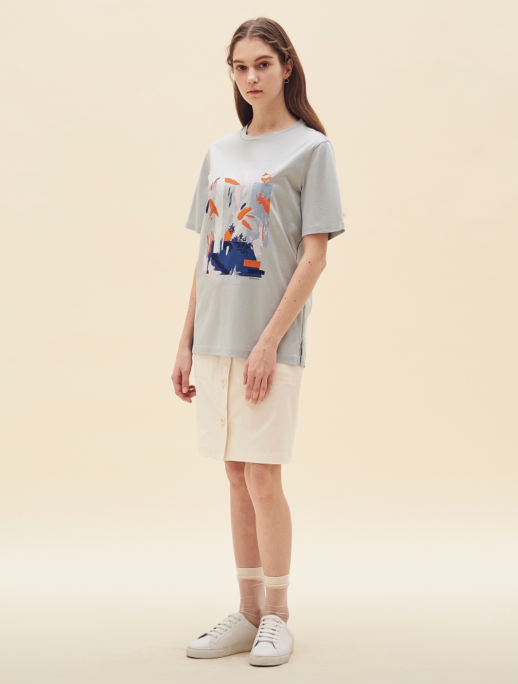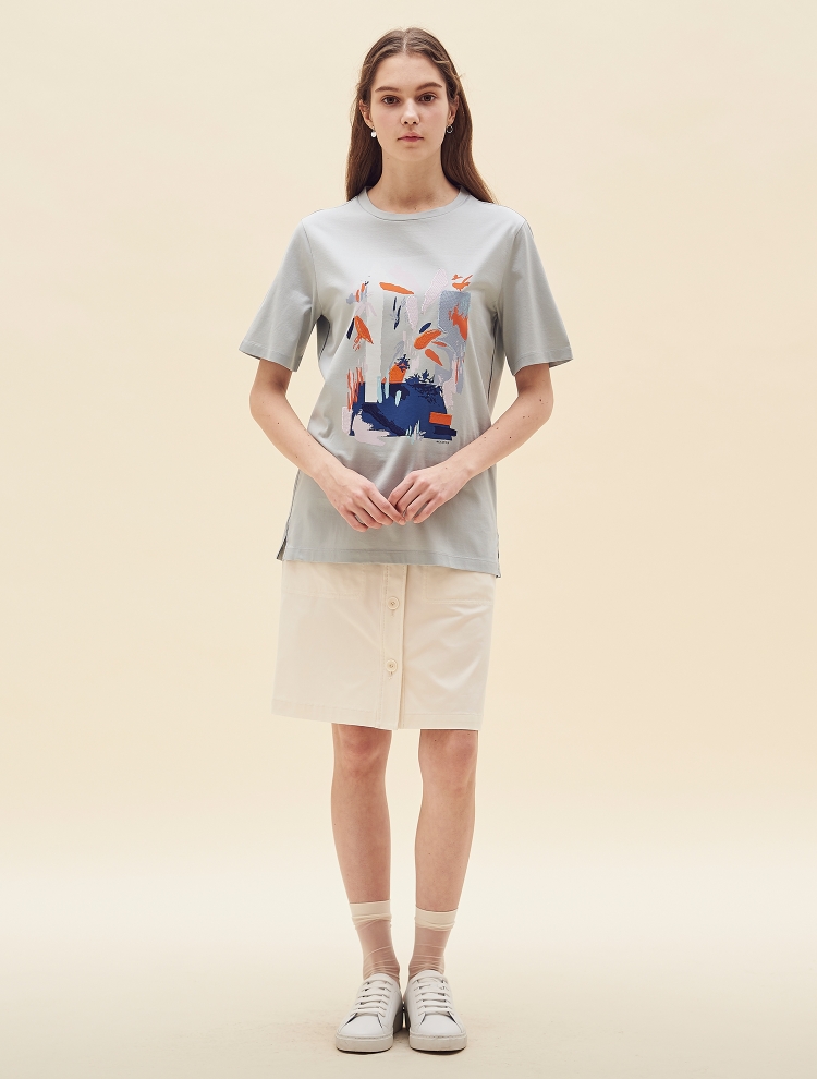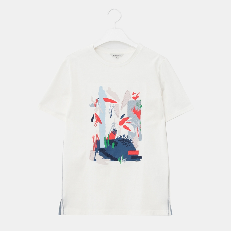 - 룩에 큰 포인트로 활용할 수 있는 컬러풀한 프린팅이 더해진 티셔츠입니다.