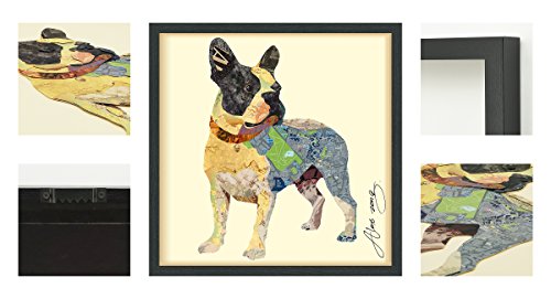 This beloved and energetic dog is gentle, alert, very intelligent, well-mannered and enthusiastic. Originating in the United States, this popular breed loves people and loves to be part of the family. Alex Zeng’s Terrier representation is wonderfully brought to life using individually cut imagery from magazines and art books that are shaped and layered to create a treasure hunt of details to the viewer’s eye. The longer you look, the more you discover. Is the eye of that puppy really a photograph of a camera lens that takes on a new focus? Boston Terrier owners will love this piece in their home.Feature
