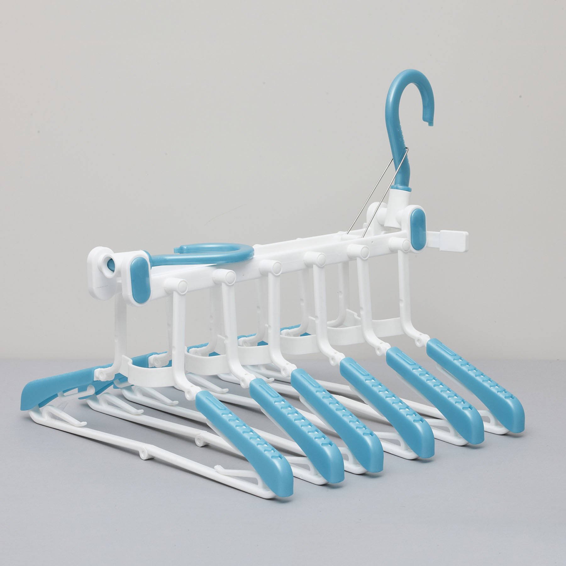 - A convenient hanger for indoor drying of shirts and towels