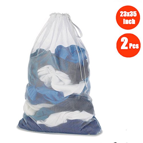 DoGeek Mesh Laundry Bag, Large Laundry Bag and Washing Bags for Laundry Sweaters, Bra, Jacket, Curtains with Draw String-23 x 35 inches-2pc,White