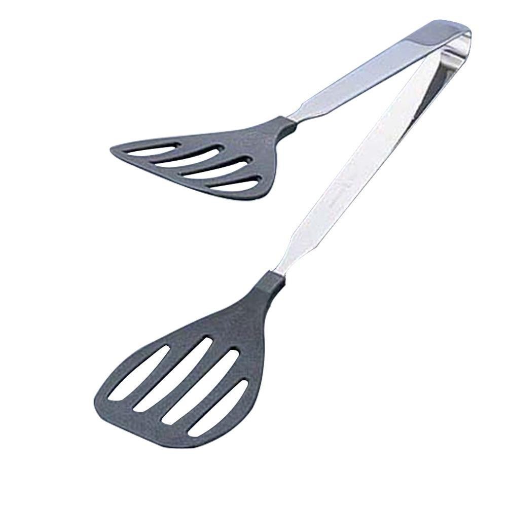 フライパンや器類を傷つけないナイロン樹脂製。フラットなハンドルは洗いやすく衛生的。