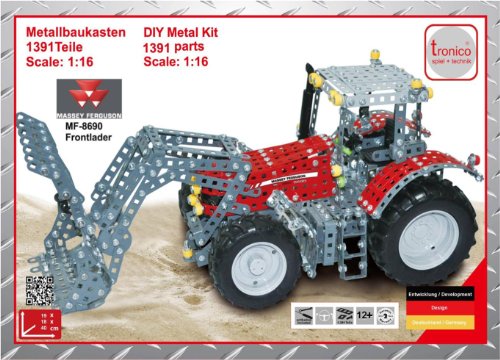 Tronico Toys GmbH Tronico 10081 - Metallbaukasten - Massey Ferguson MF 8690 mit Frontlader, Massstab 1:16
