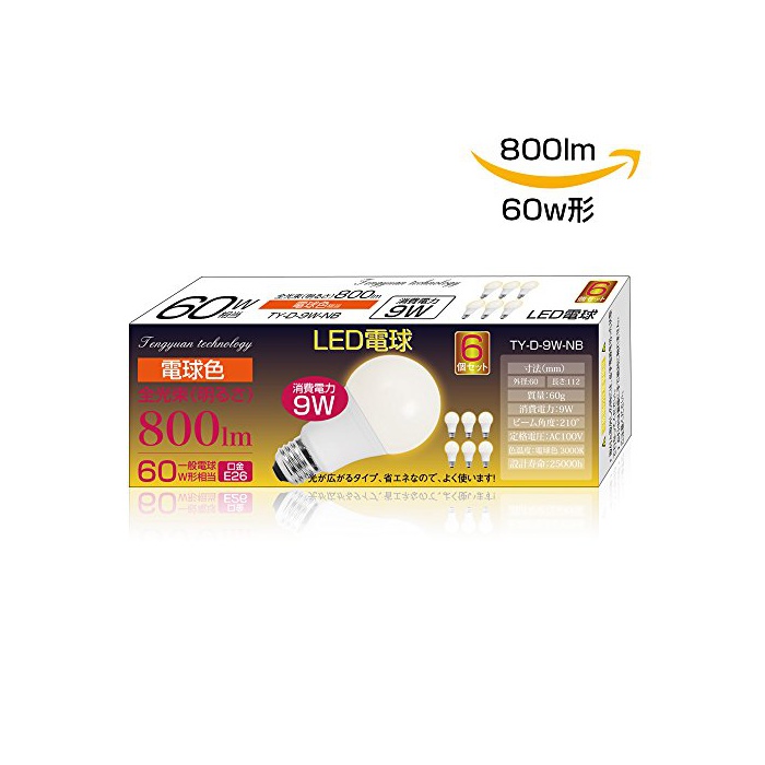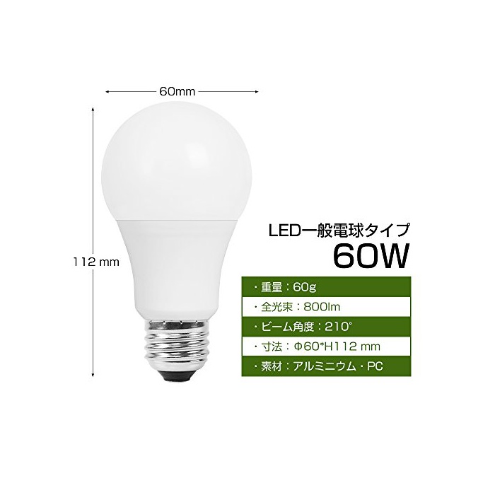 원본상품명: LED電球 9W 60W形相 E26口金 屋照明 800lm 光色 電球色 E26 led 電球 A60 非調光