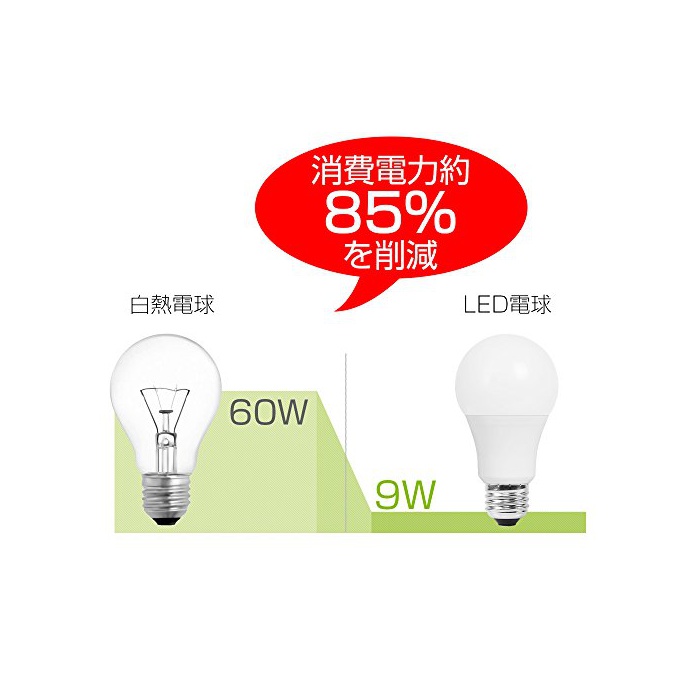 에너지 절약:이LED전구는 백열전구60W 형상당에서,종래의 백열전구와 비교,소비전력은 약85%를 삭감으로 옵니다!가계로도 친절한 상품입니다.