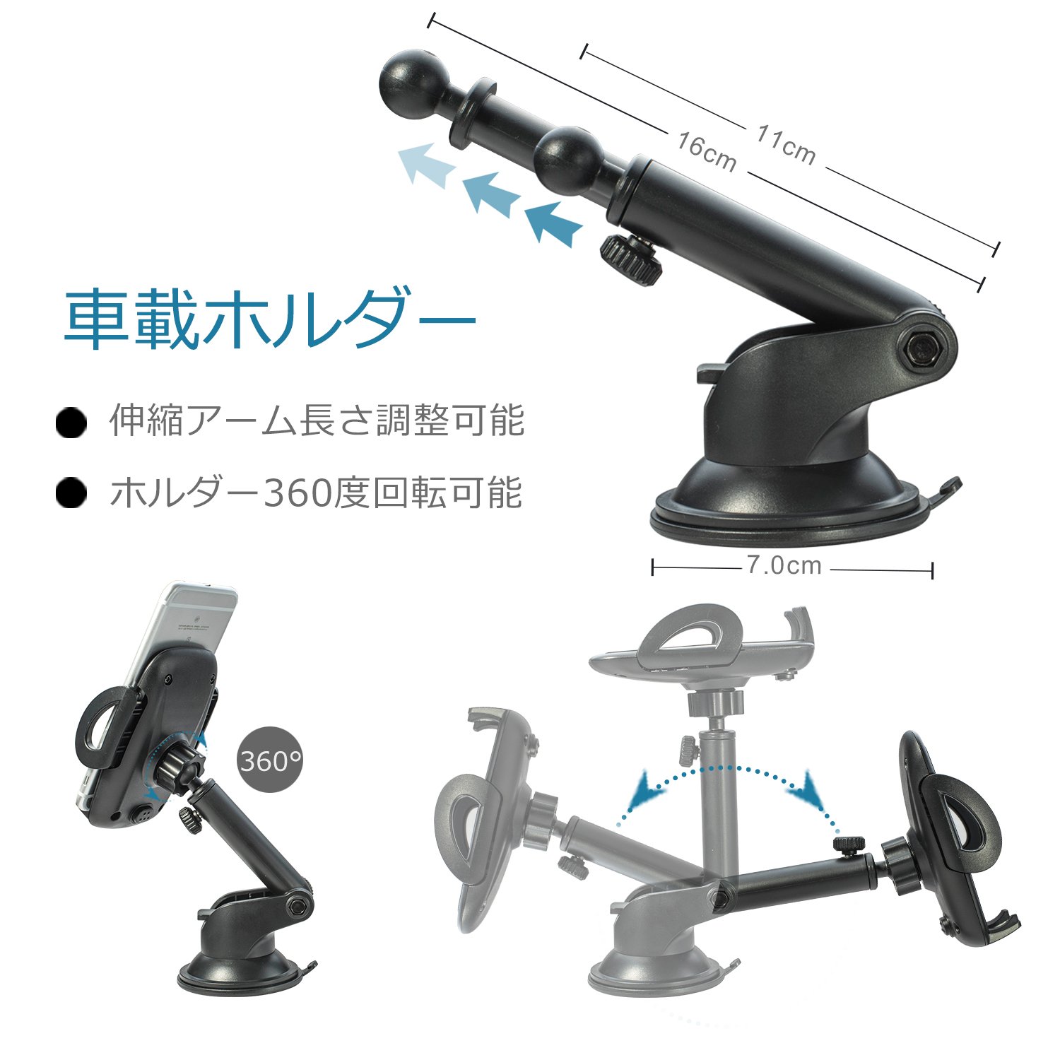 Telescopic arm: 11 cm - 16 cm