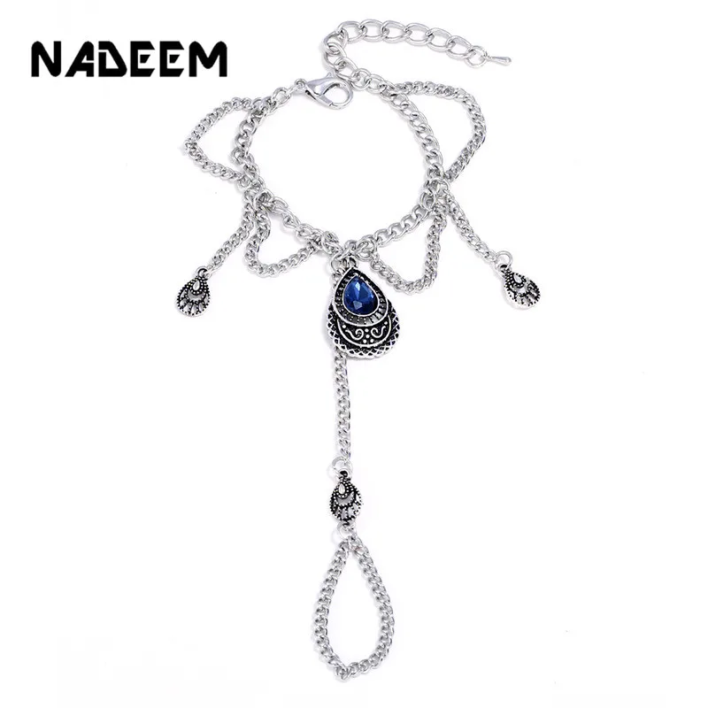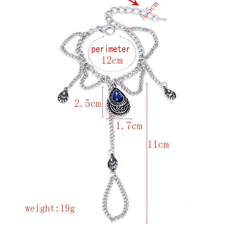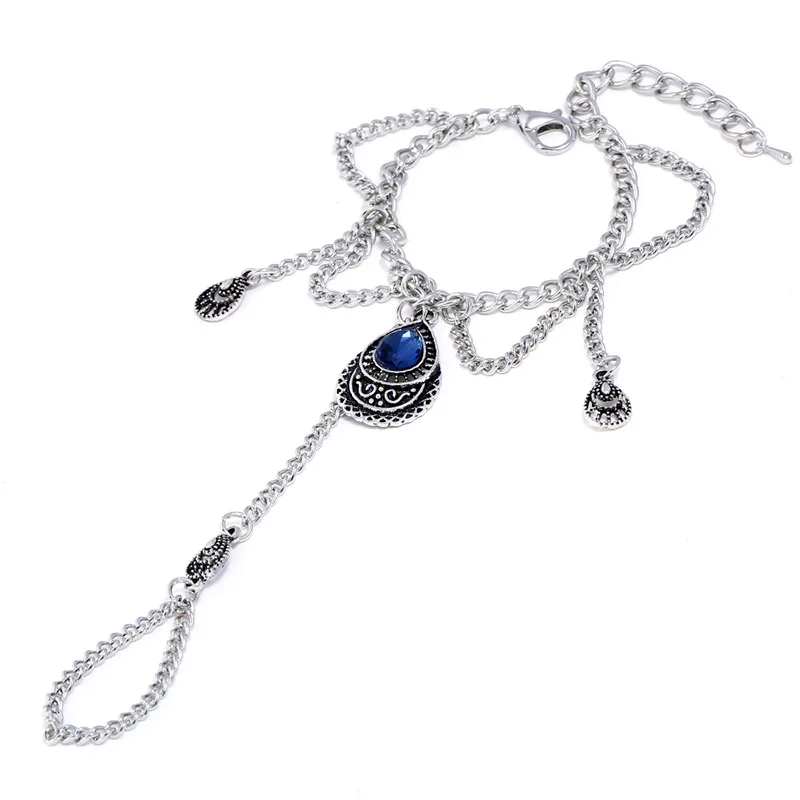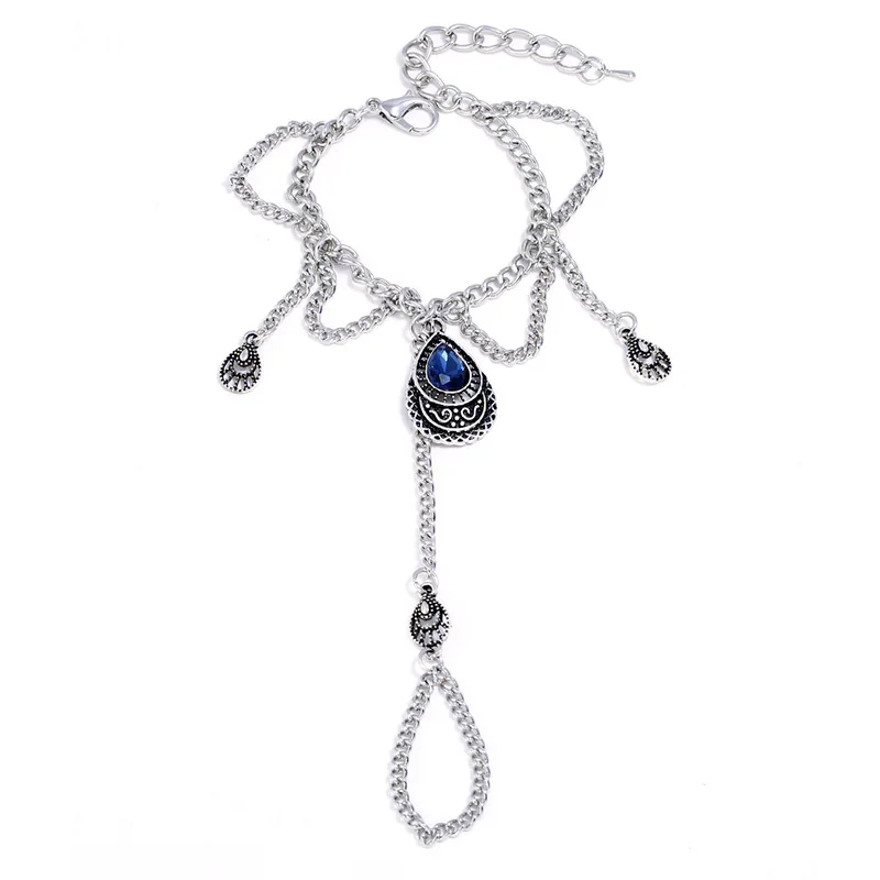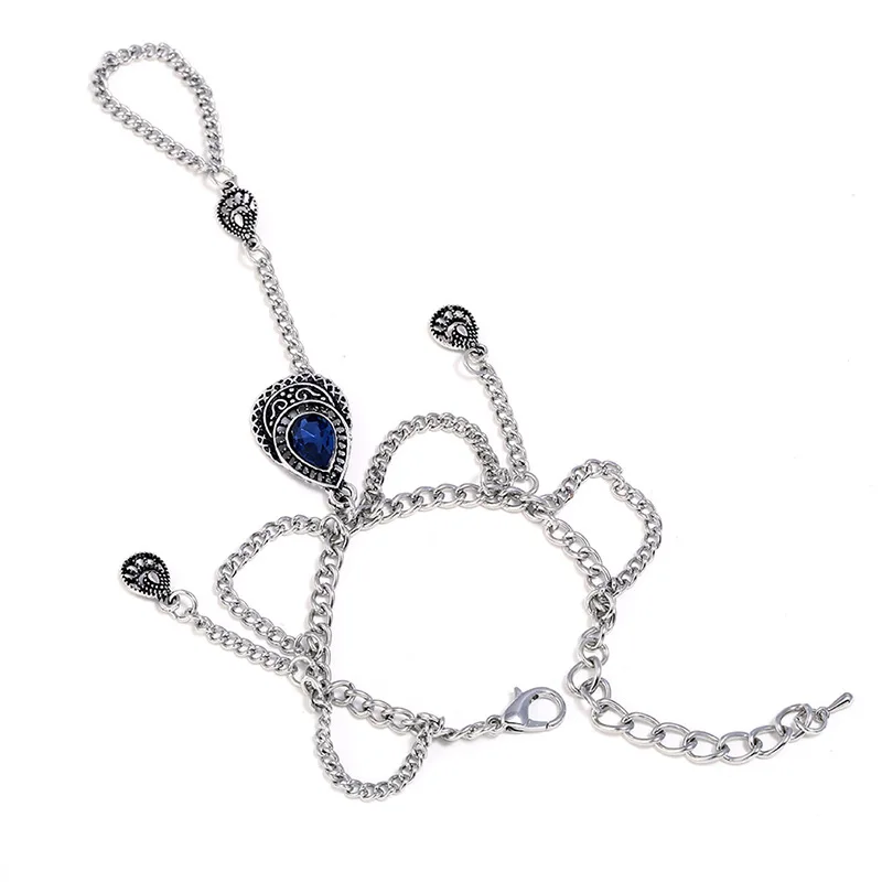 Product Name:Blue Crystal Chain Linked Finger Loop Bracelet Harness Ring Bracelet