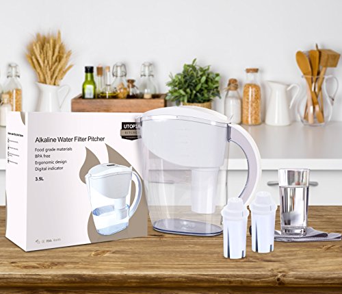 Alkaline Pitcher with Sturdy Construction Utopia’s alkaline pitcher is a much advanced version than the preceding one as it’s built with latest technology. It’s easy to fill lid and digital gauge notifies when to change the filter. The BPA free and food grade, premium eco-friendly material with anti-block technology filter adds great value to the performance and durability. Great Functionality The Multi-stage filter consist of particle catching micro nets, coconut activated carbon, KDF, stone and ceramic ball blend. The Micro-clustered structured water molecules improve absorption, allowing the water to easily penetrate our cells to keep our body hydrated for a healthier and energy-filled life. Alkaline iodized water improves health by reducing acidity, inflammation, heavy metals, lead, chemicals, odor, chlorine, fluoride and much more while increasing antioxidants, immunity and essential mineral up-take such as zinc and calcium. 0 |