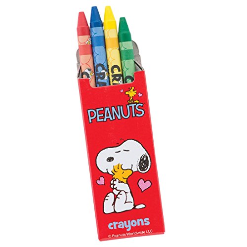 Mini Snoopy® crayons are great additions to your Peanuts® Valentine's gifts. Four assorted crayons per box. Safe and non-toxic.3 1/2"