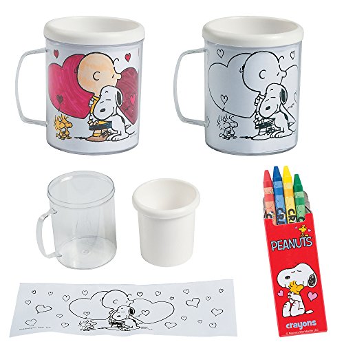 Create a super cute place for drinks to hang out with these Color Your Own Peanuts® Valentine Mugs. A fun addition to your DIY supplies, each paper insert is printed in a Peanuts® Valentine’s Day theme. Plastic. 4 1/4" 8 oz. Remove insert before washing. Hand wash only.