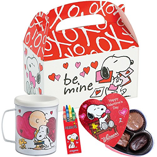 Peanuts Snoopy Valentines Day Gift Basket | Snoopy DIY Color Your Own Mug, Peanut Themed Crayons, Whitman's Sampler Chocolate 1.6 Oz & Favor Treat...