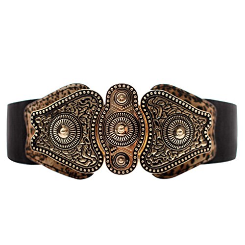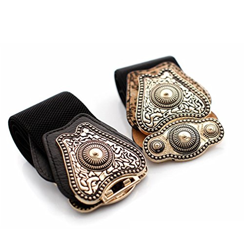 Binding : Apparel Product Description Fashionable women's wide waist belt for you or who you love; western vintage patterns give you a special exotic flavor whether you are wearing casual or formal dresses in summer or down coat in cold winter; stylish appearance and easy to use buckle makes it a perfect birthday and valentine's day gift for your wife or girl-friend. Material: Elastic fabric faux leather durable metal alloy Buckle: Simple hook buckle Package including: Wide belt*1 Size Guide: Our size in the size chart is the total length of the belt (buckle is included). Relxed length: 25", stretched length: 38", belt width: 2.3", buckle length: 6.5", buckle width: 3" Tips: * There may be a little color difference due to the different light and computer display. * Please allow 1 inch measurement error due to different measurement methods.