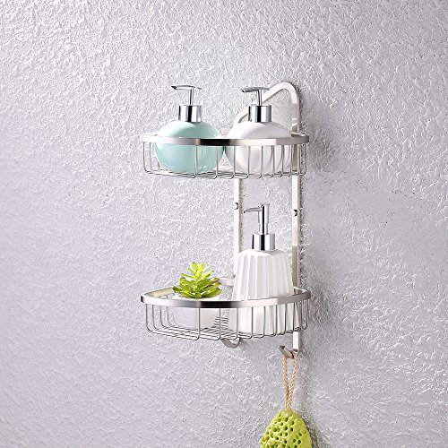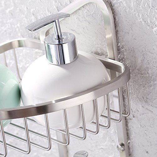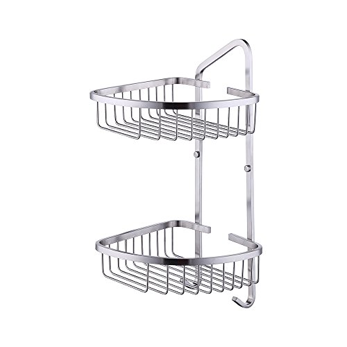 KES A2124 Bathroom 2-Tier Corner Shelf Basket with Towel Hook Stainless Steel Wall Mount, Brushed Stainless Steel