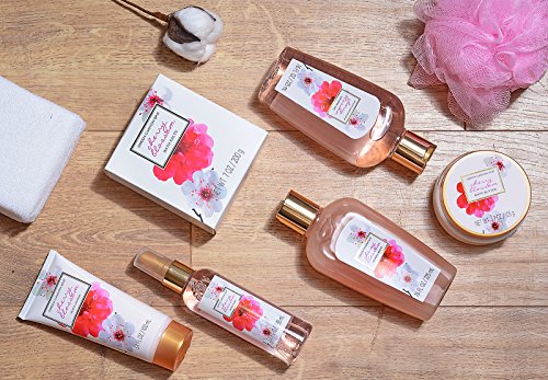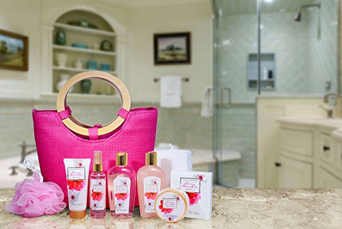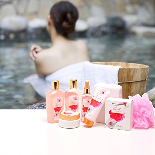 Studio : Green Canyon Spa Publisher : Green Canyon Spa Binding : Misc. Product Description PREMIUM AT-HOME SPA GIFT: Treat yourself to a luxurious at-home spa experience. Our indulgent gift set of fragrant and pampering bath and body products are formulated with only the best ingredients and is carefully handcrafted with the highest level of quality and care. Our upscale and beautiful packaging is perfect as a gift or for your own indulgent pleasure. Items include: shower gel, bubble bath, body mist, body lotion, body butter, bath salts, bath pouf, sponge, and tote basket bag wtih wood handles.? SUPERIOR FORMULATIONS WITH FRAGRANT ESSENTIAL OILS: Our unique and proprietary bath and body formulations contain the finest ingredients.? Nourishing ingredients such as Sunflower Seed Oil and Vitamin E help to moisturize and soften dry skin.? Soothing and relaxing?Cherry Blossom?essential oils calm the mind, promote overall well-being and provide the ultimate spa experience in a most fleshing way. With the Breeze of Spring, the fragile pink flower petals, dedicated aroma of cherry blossom pulls you out of the complicated realistic life into a restorative , relaxing journey under snow-top FUJI mountain LUXURIOUS Tote Bag: This stylish and roomy tote bag is perfect for on the go, at the beach or at the spa! Perfect size to make any recipient feel pampered and special. It is perfect gift for any special occasions such as: Holiday, Birthday, Mother's day, Father's day and Baby showers etc 0
