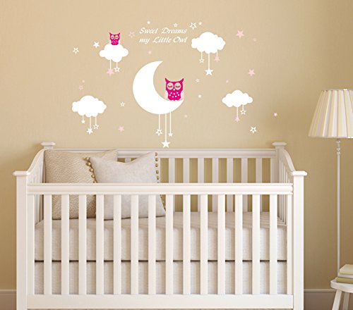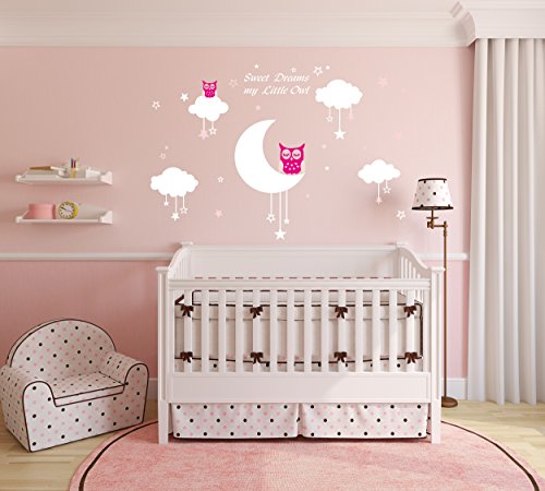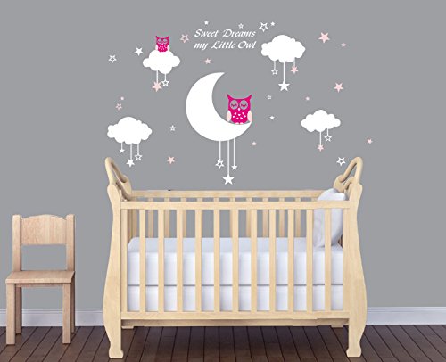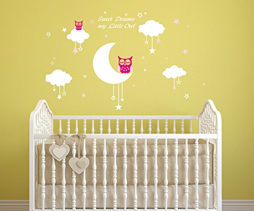 LUCKKYY Sweet Dreams My Little Owl Wall Decal Vinyl Wall Sticker Baby Nursery Decor Kids Room Wall Stickers (Pink+white)