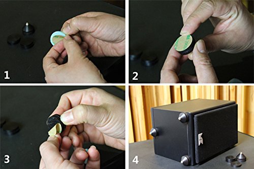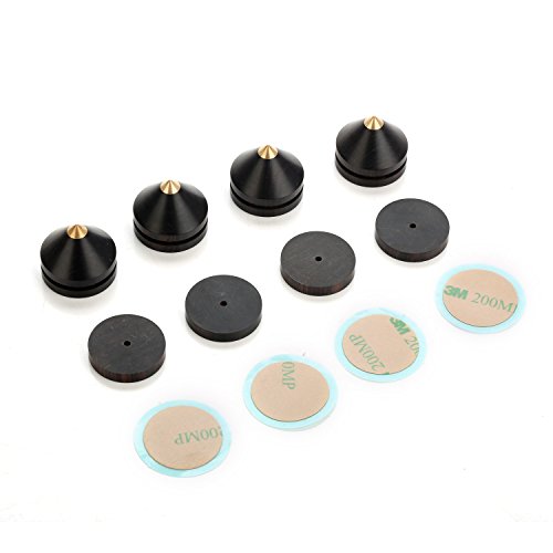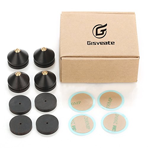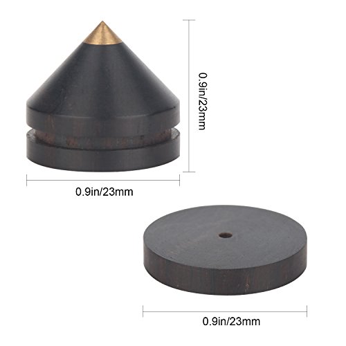Studio : Gisveate Publisher : Gisveate Product Description Top Quality Ebony: The spike is made of high density natural ebony wood, with uniform size and exquisite color. Heavy duty spike which can hold a large speaker easily. The stand feet is solid enough to support your big unit. Acquiring the Perfect Sound Quality: The spike can improve the sound clarity, stereo imaging, and bass response. With adjustable spike height, you could wander in the world of image and sound. Multiple Utility: The ebony spike can be used for your large speaker, CD players, turntables, etc. It can separate your speakers from vibration. Return Guarantee: We have set up the 100% Return Guarantee in case you would like to request a return. If you are not happy with our product, you could request the return and then we would issue the full refund for you immediately. What You Get: 4*Small Spikes (0.9in/23mm Diameter) 4*Small Bases (0.9in/23mm Diameter) 4*Adhesive Pads