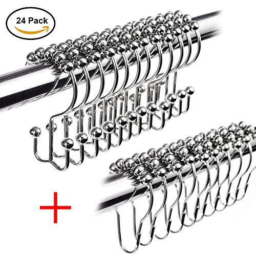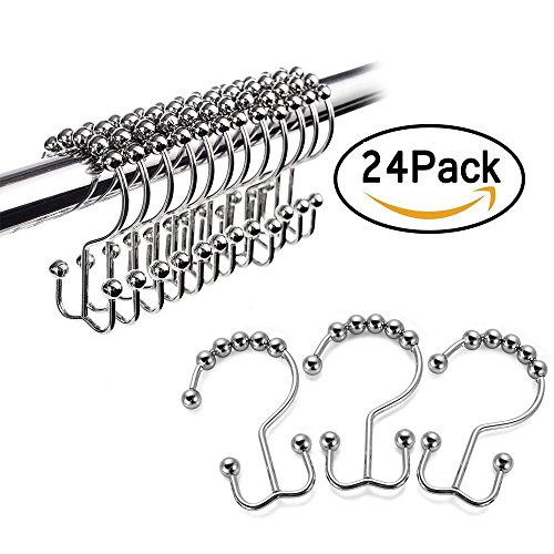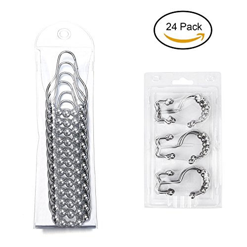 - ✌Value Pack - Pack of 24 shower curtain hooks in a PVC pack, it can be used as gift.Versatile 2-in-1 Function : Hangs both shower curtain and liner for easier handling and the hooks are strong enough to hold a heavy curtain. Rolls nicely on 3/4" to 1-1/8" diameter shower rods (curved, straight or custom type)