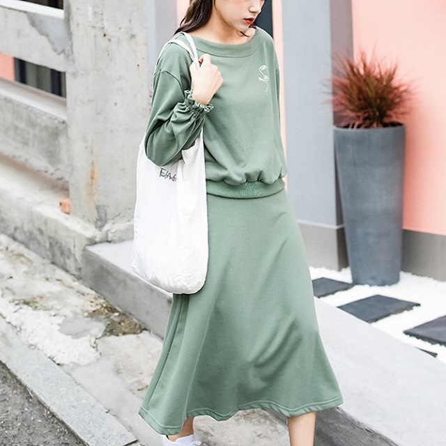 スカートはシンプルルックなミモレ丈のフレアシルエットで大人っぽく着こなせます。