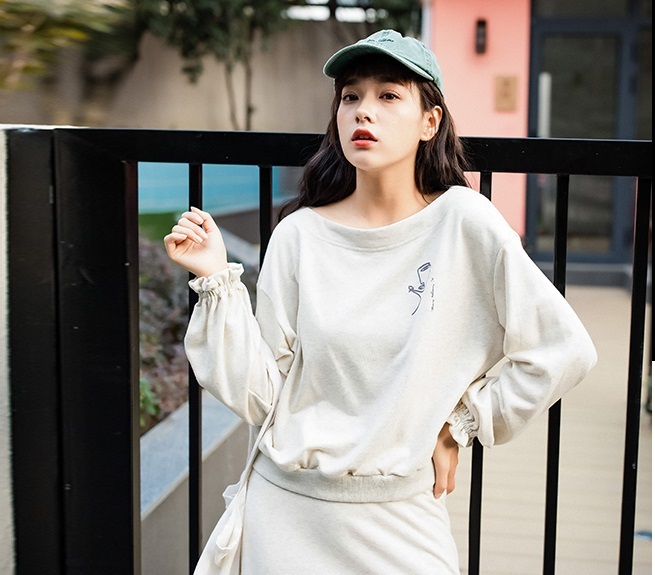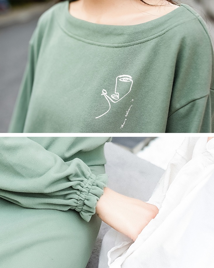 ワイドなクルーネックと袖のギャザーが作り出すフリルが可愛いポイント!
