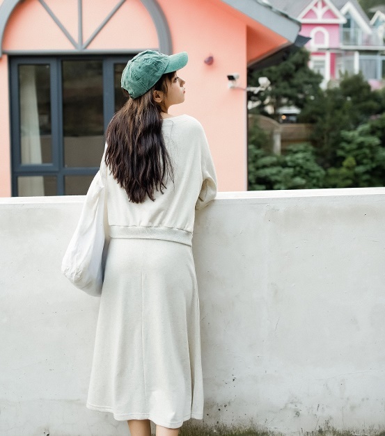 XL:着丈 49 / バスト 122 / 袖丈 48 / 肩幅 54 / ウエスト 70 / スカート丈 73